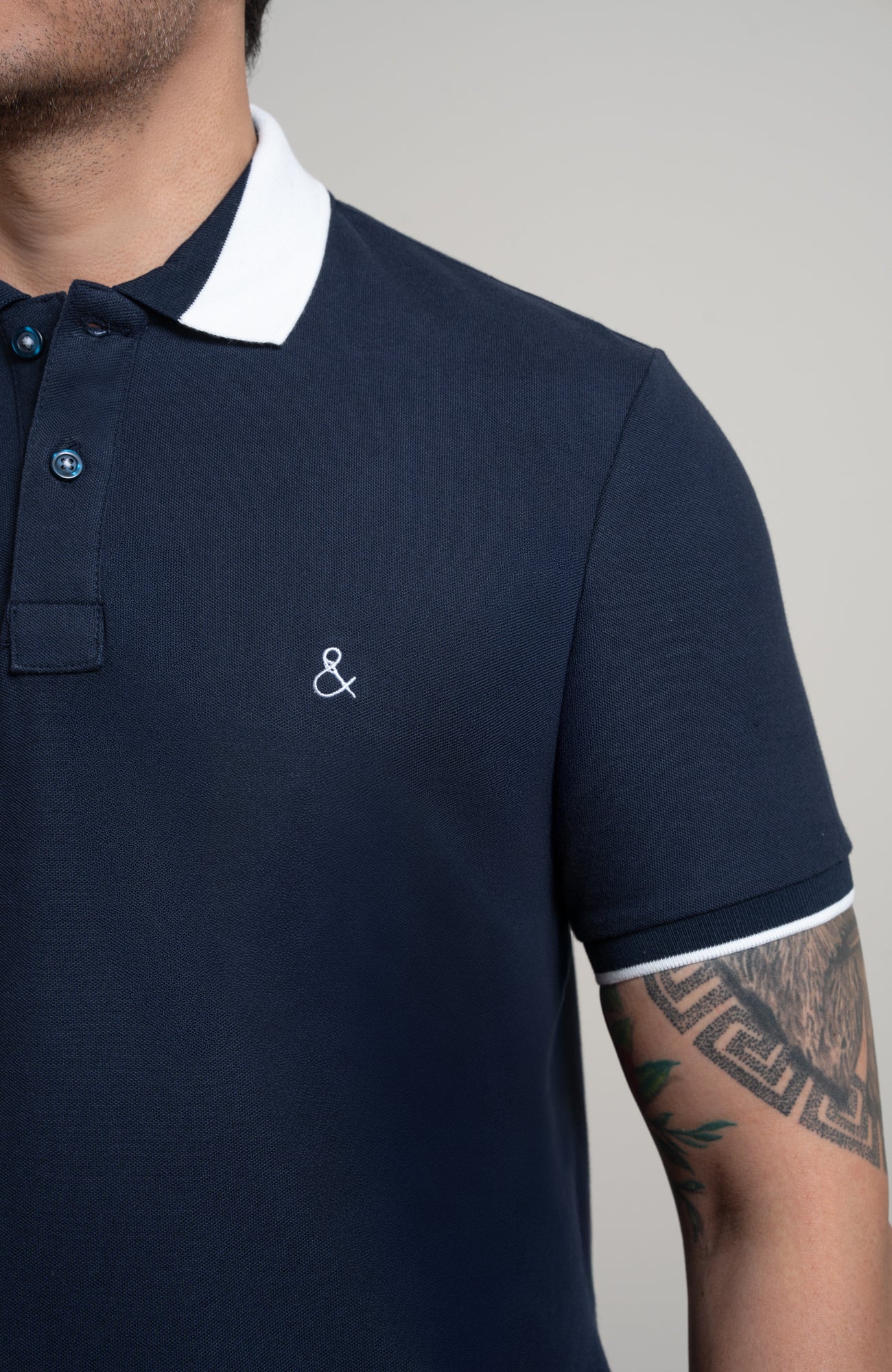 Navy Blue 100% Cotton pique short sleeve polo t shirt with Rib cuff and 2 tone collar...