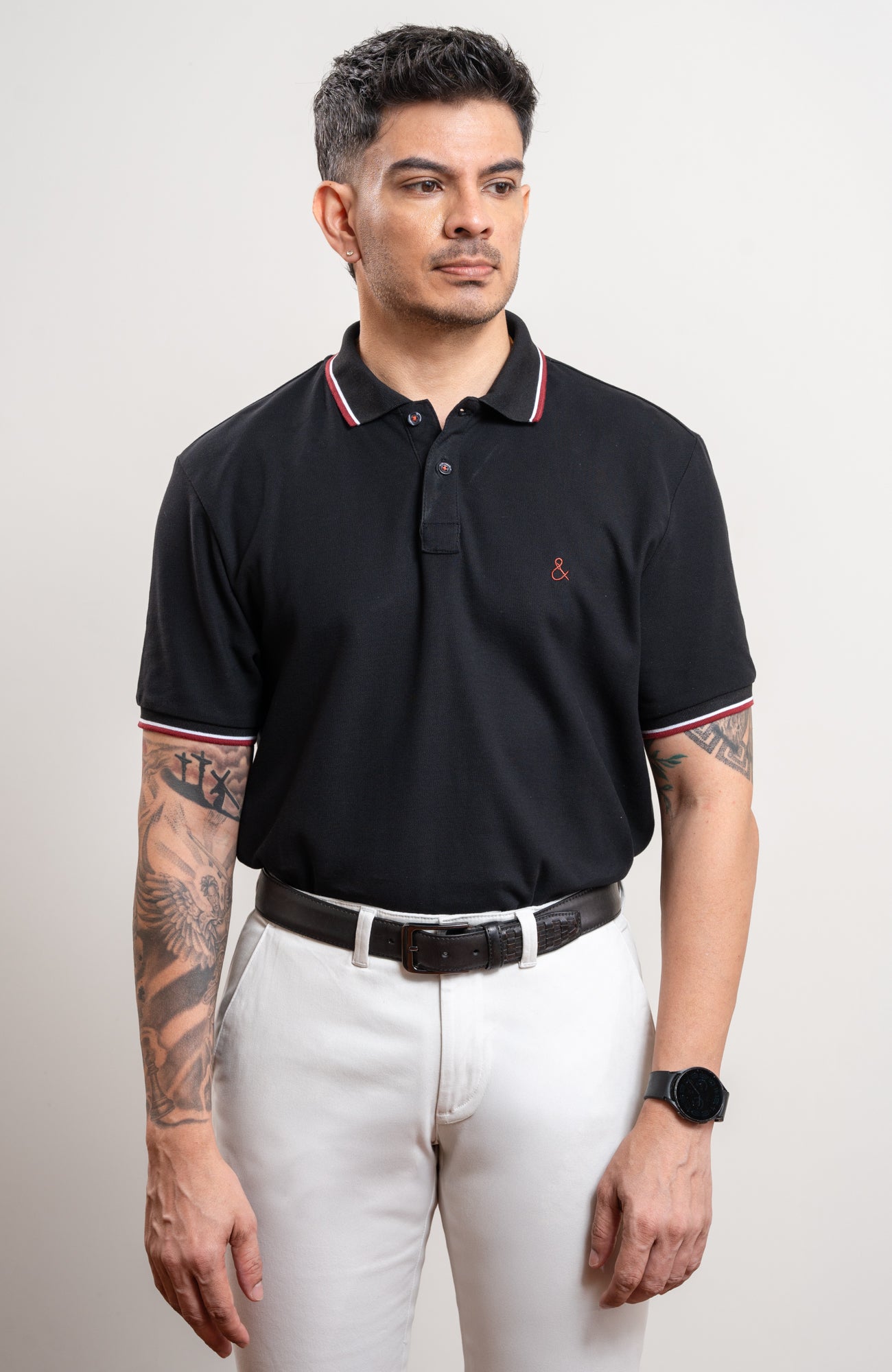 Jet Black 100% Cotton pique short sleeve polo t shirt with Rib cuff & Collar Regular Fit...